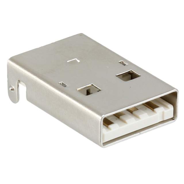 Features - Detailed Description USB - A USB 2.0 Plug Connector 4 Position Surface Mount, Right Angle; Through Hole