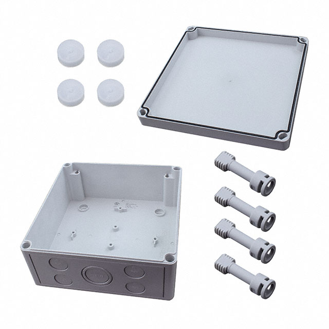 Features - Detailed Description Box Plastic, Polycarbonate Gray Hand Held, Cover Included 7.170" L x 7.090" W (182.12mm x 180.09mm) X 3.540" (89.92mm)