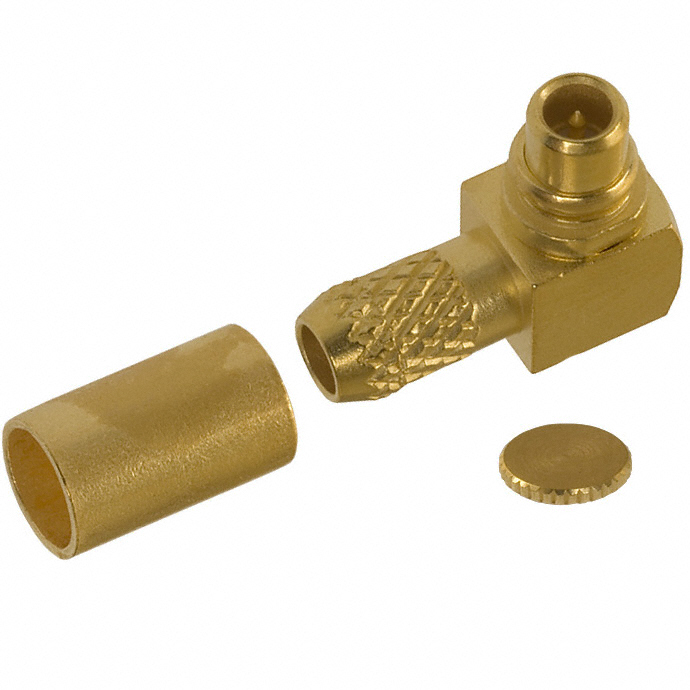 | Dielectric Material | Polytetrafluoroethylene (PTFE) | Detailed Description | MMCX Connector Plug, Male Pin 50 Ohm Free Hanging (In-Line), Right Angle Solder |