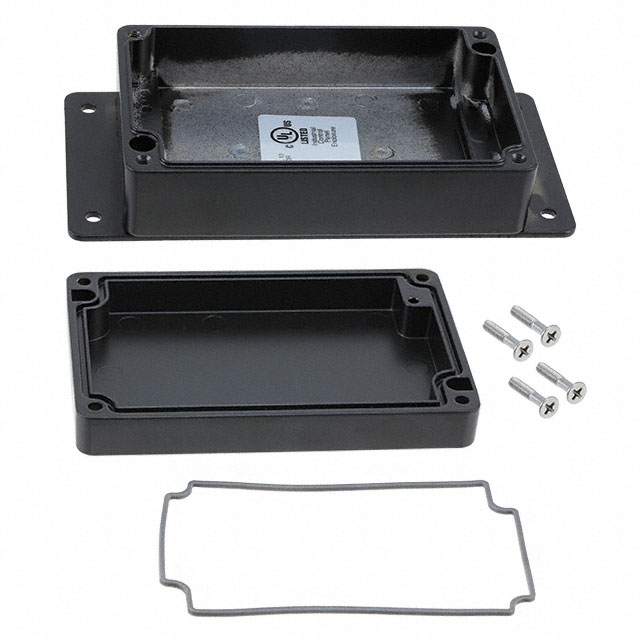 Features PCB Supports, Watertight Detailed Description Box with Mounting Flange Metal, Aluminum Black Cover Included 4.900" L x 3.140" W (124.46mm x 79.76mm) X 1.590" (40.39mm)