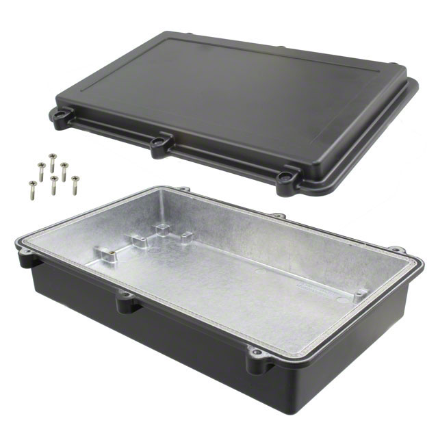| Features | EMI Shielded, PCB Supports | Detailed Description | Box Metal, Aluminum Black Cover Included 10.787" L x 6.811" W (273.99mm x 172.99mm) X 2.598" (66.00mm) |
