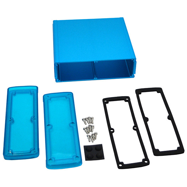 Features Card Guides, Sealing Gaskets Detailed Description Box Metal, Aluminum with Plastic, Polycarbonate Panels Blue, Translucent Blue End Panel(s) 6.654" L x 6.996" W (169.00mm x 177.69mm) X 2.406" (61.10mm)