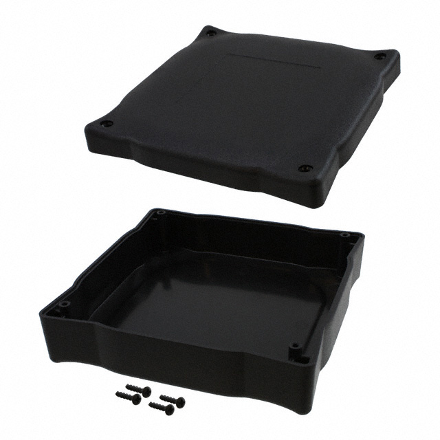 Features PCB Supports Detailed Description Box Plastic, ABS Black Hand Held, Split Sides 4.500" L x 4.500" W (114.30mm x 114.30mm) X 1.510" (38.35mm)