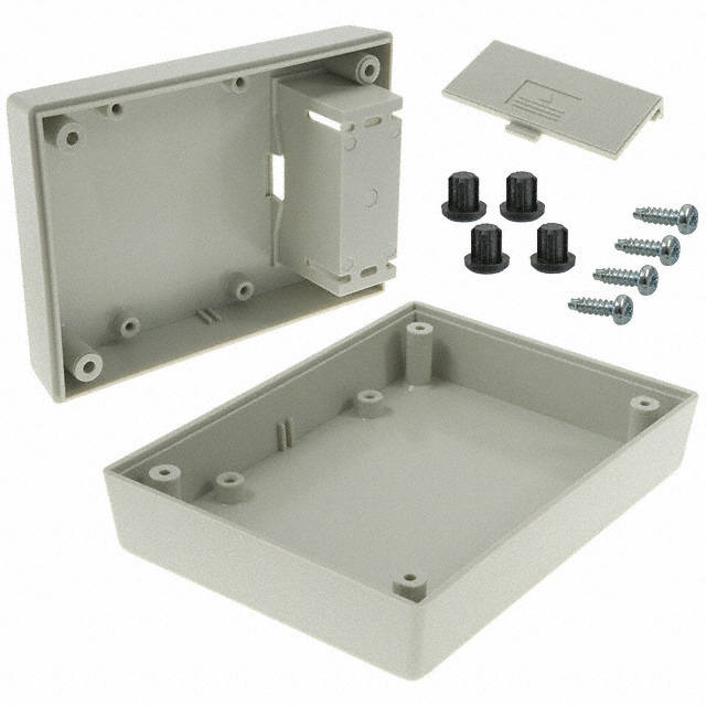| Features | Battery Compartment, 9V, PCB Supports | Detailed Description | Box Plastic, ABS Gray Split Sides 4.375" L x 3.250" W (111.13mm x 82.55mm) X 1.525" (38.74mm) |