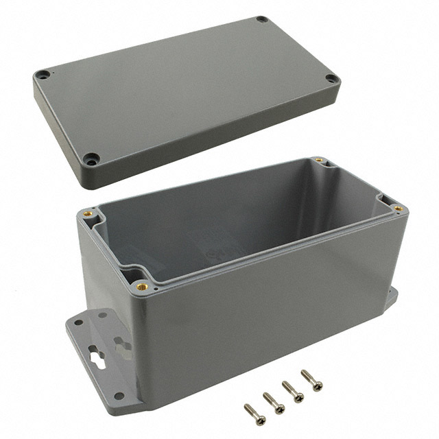Features Card Guides, PCB Supports Detailed Description Box with Mounting Flange Plastic, ABS Gray Cover Included 6.387" L x 3.246" W (162.23mm x 82.45mm) X 3.346" (85.00mm)