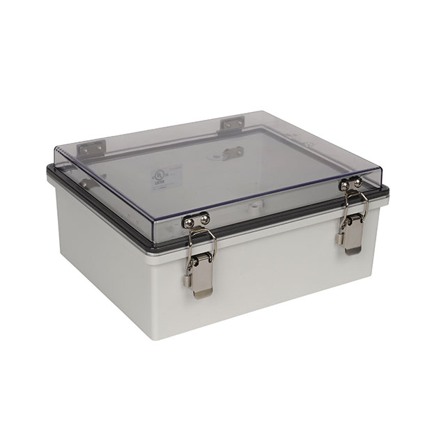 Detailed Description Box Polycarbonate (PC) Gray Hinged Door, Lid 10.870" L x 8.860" W (276.10mm x 225.04mm) X 4.720" (119.89mm) Design Hinged Door, Lid