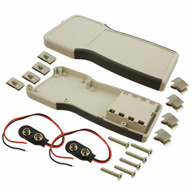 Features Battery Compartment, 9V and AA, Flame Retardant, PCB Supports Detailed Description Box Plastic, ABS Gray Hand Held, Split Sides and End Panel(s) 8.268" L x 3.937" W (210.00mm x 100.00mm) X 1.260" (32.00mm)