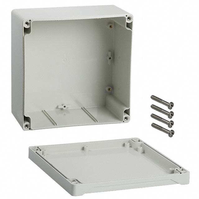 Features Card Guides, PCB Supports, Watertight Detailed Description Box Plastic, ABS Gray Cover Included 6.299" L x 6.299" W (159.99mm x 159.99mm) X 3.543" (90.00mm)