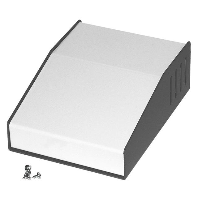 Features Slope, 15° Detailed Description Console Metal, Steel Gray Slanted Top 6.260" L x 4.630" W (159.00mm x 117.60mm) X 2.270" (57.66mm)