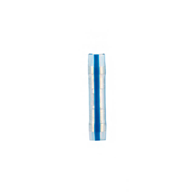 Features High Temperature, Radiation Resistant Detailed Description Terminal Butt Splice, Inline, Individual Openings Connector Crimp 14-16 AWG Transparent, Blue Stripe