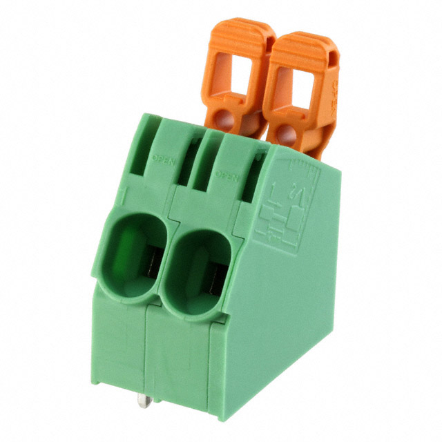 | Features | Lever Actuated | Detailed Description | 2 Position Wire to Board Terminal Block 30° (150°) Angle with Board 0.295" (7.50mm) Through Hole |
