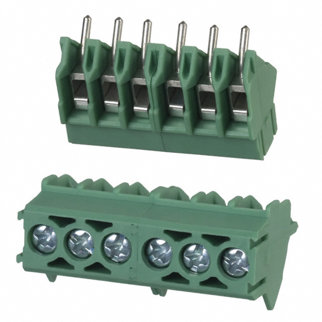 | Features | Interlocking (Side) | Detailed Description | 6 Position Wire to Board Terminal Block 45° (135°) Angle with Board 0.138" (3.50mm) Through Hole |