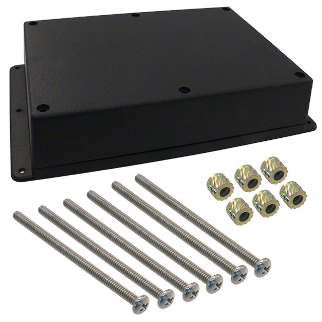 | Features | Front Access, PCB Supports, Wall Mount | Detailed Description | Box with Mounting Flange Plastic, ABS Black Cover Included 6.880" L x 4.880" W (174.75mm x 123.95mm) X 1.600" (40.64mm) |